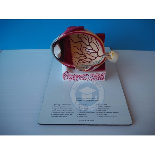 หุ่นจำลองโครงสร้างนัยน์ตามนุษย์ แสดงภาพตัดตามยาวของนัยน์ตา แสดงโครงสร้าง ภายในและภายนอก ได้แก่ อวัยวะต่างๆเส้นเลือดบริเวณนัยน์ตา และเส้นประสาทตา ขนาดของหุ่นจำลอง 220x270x220 มม.