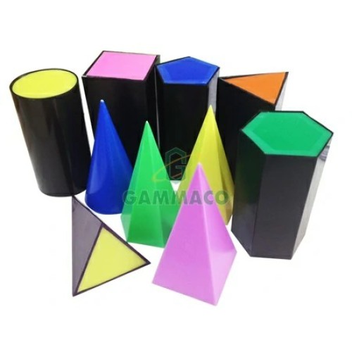 รูปทรงปริมาตรเรขาคณิต เป็นพลาสติกสีสันสดใส 10 แบบ